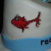 I cut the shapes of the fish out of fondant, then hand painted them with the gel colors and vodka.