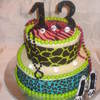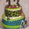animal print cake in neon colors, kit is sold at michaels its made by duff..