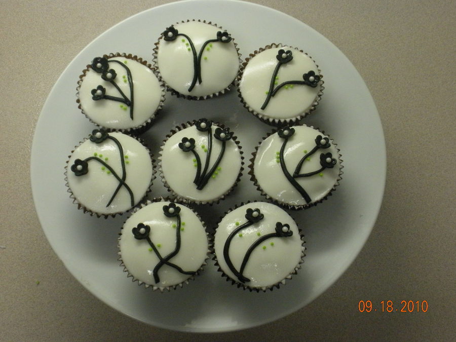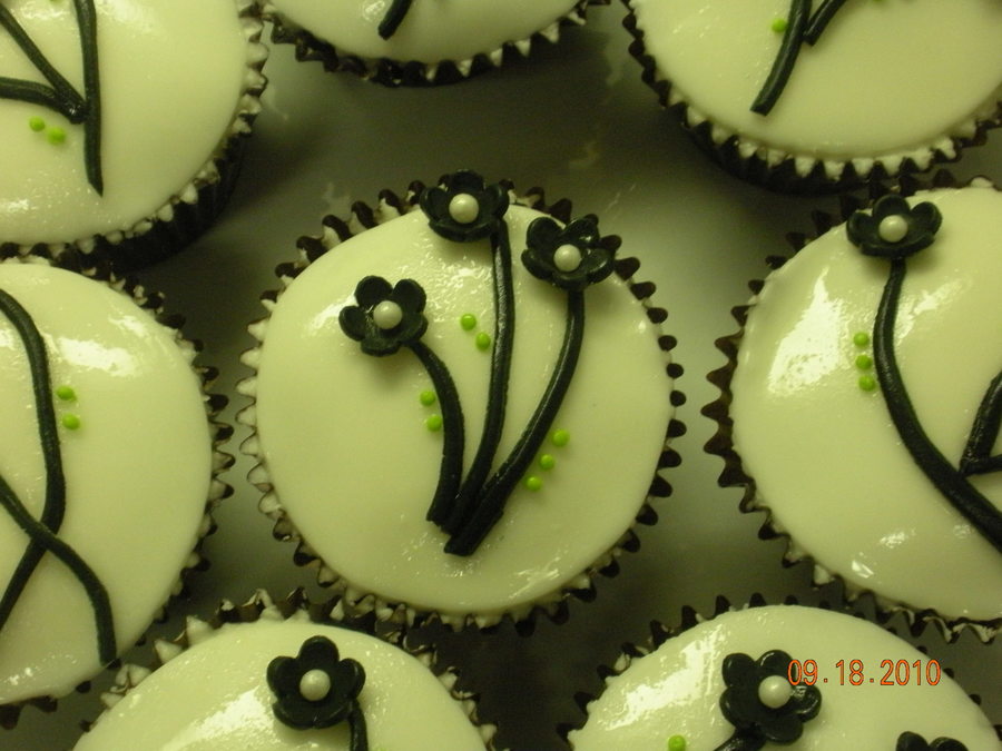 Chocolate cupcakes with coconut cream cheese frosting and gumpaste flowers
