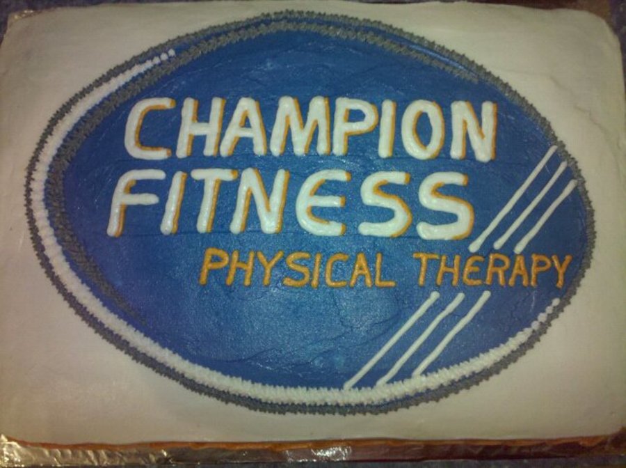 Open house for physical therapy center. white double sheet cake