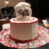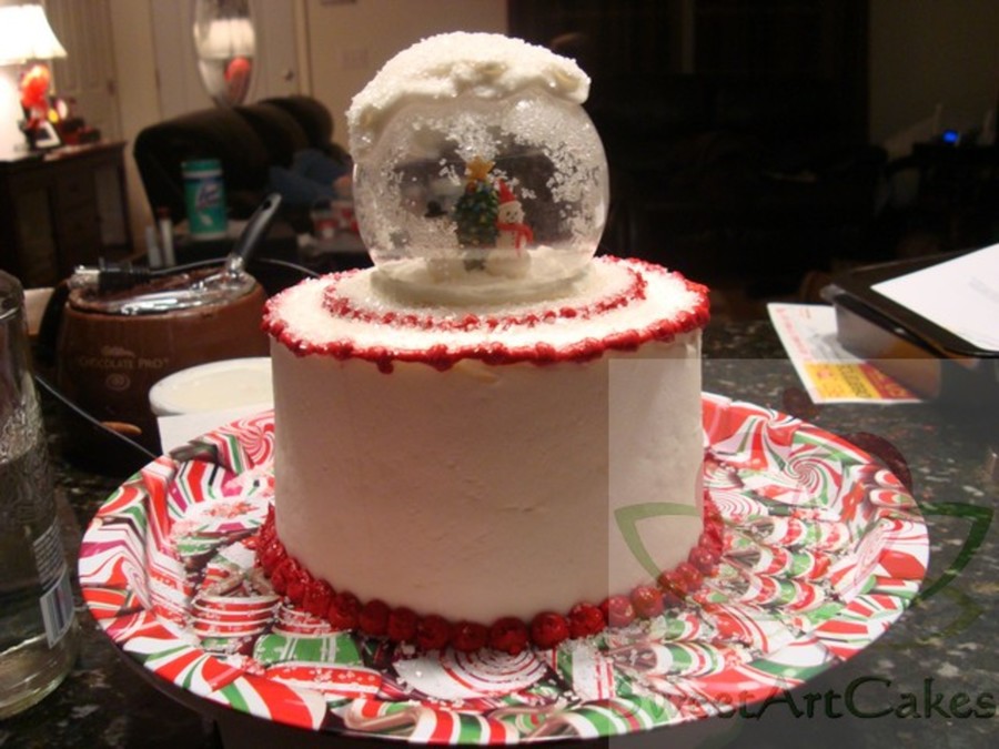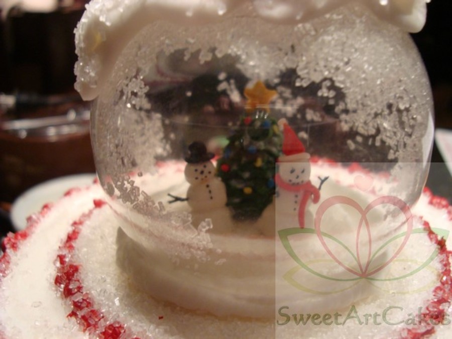 Gumpaste snowmen are just under an inch tall. I used floral wire for their arms and the coal faces and buttons are hand painted. The tree is also made from gumpaste.