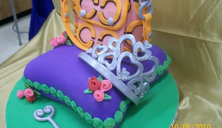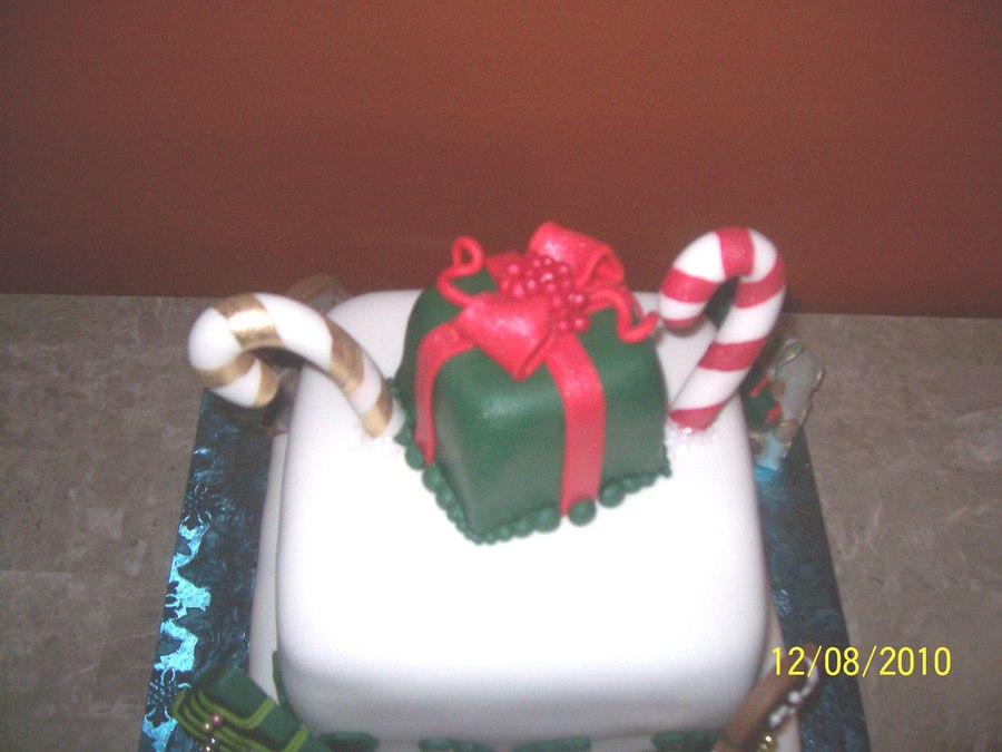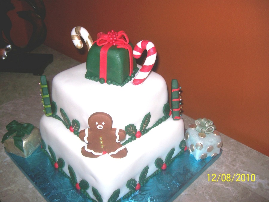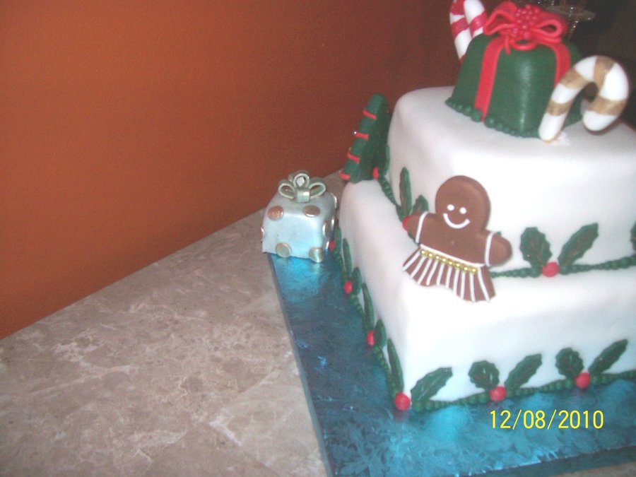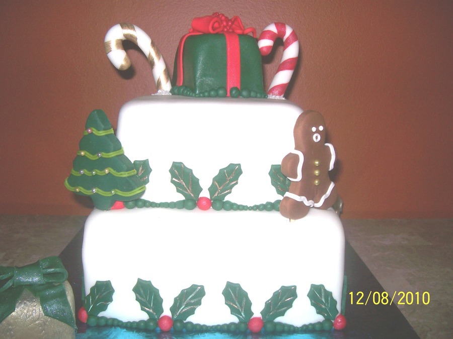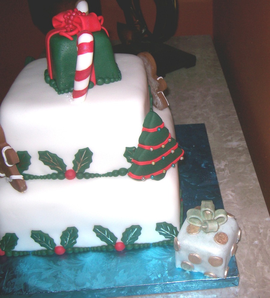6" square Coconut cake & 8' apple cake covered in fondant with decorations also made out of fondant.