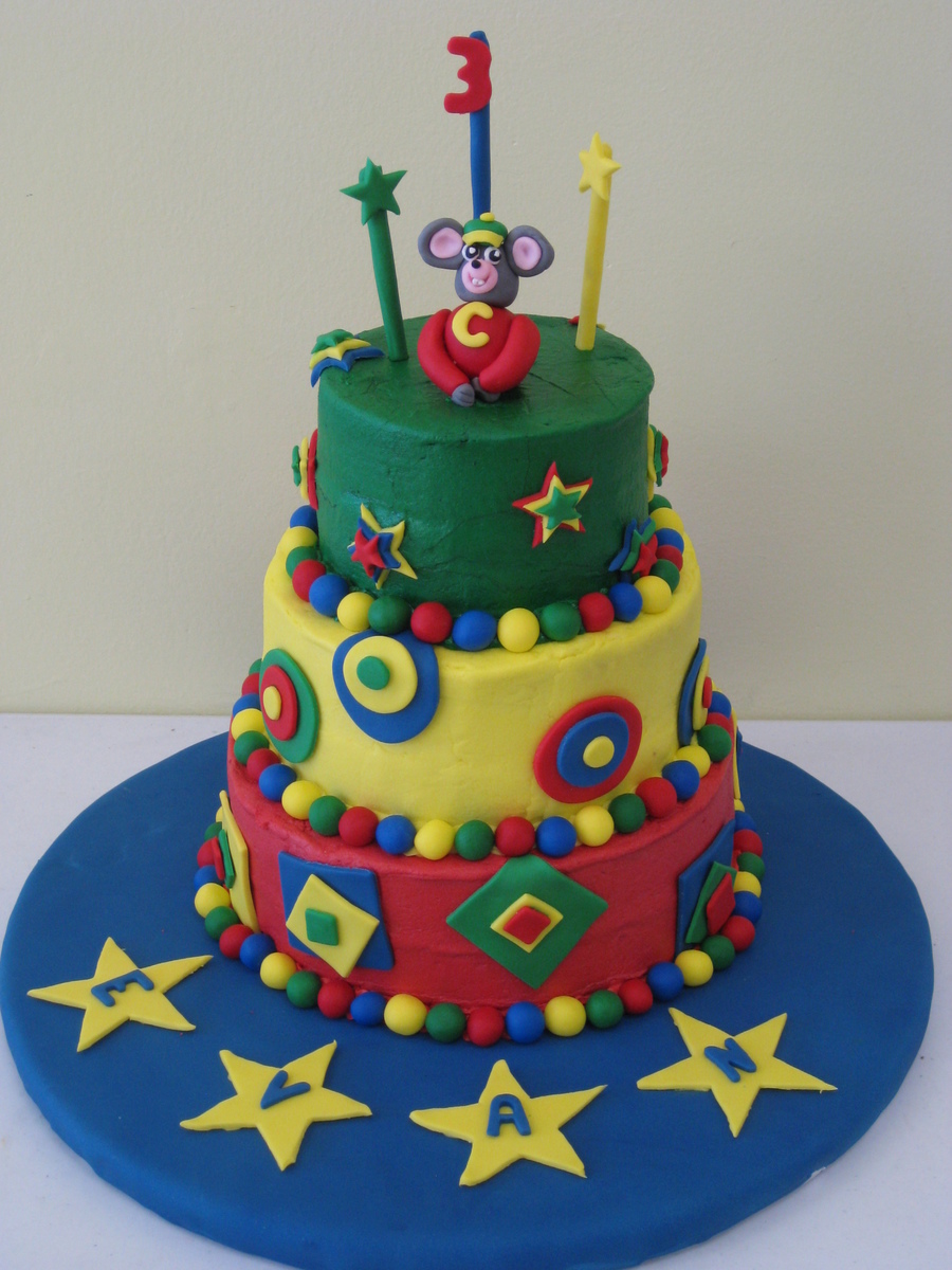 Client was having birthday party at Chuck E. Cheese's and wanted a Chuck E-look-alike. I love the bright colors.