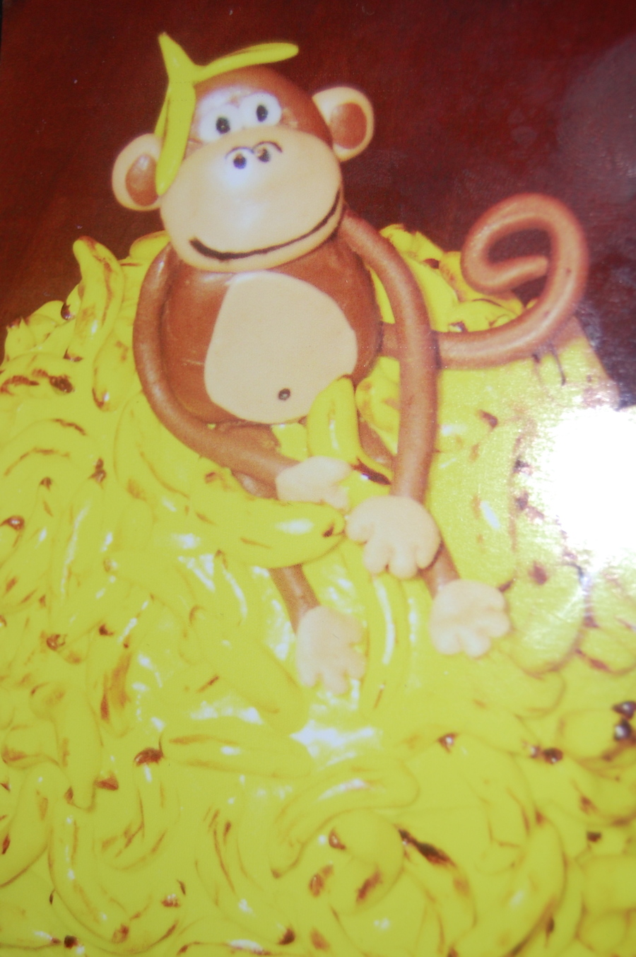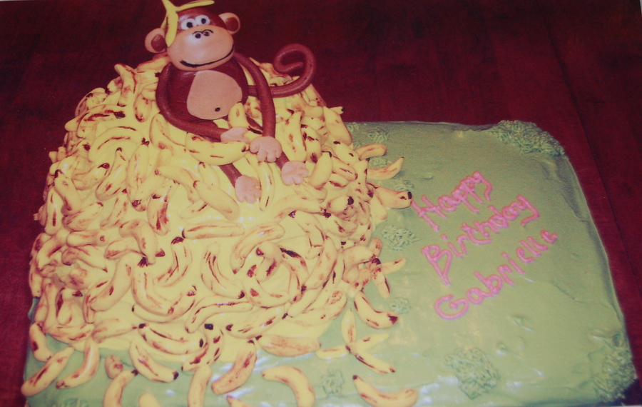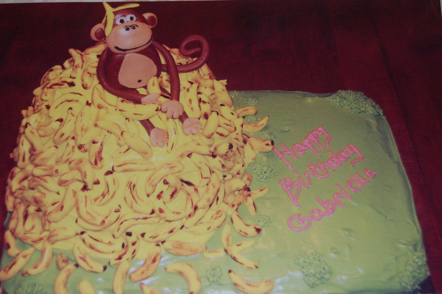 This was so fun to make. banana cake w/cream cheese icing, fondant bananas and monkey. Thanks for looking
