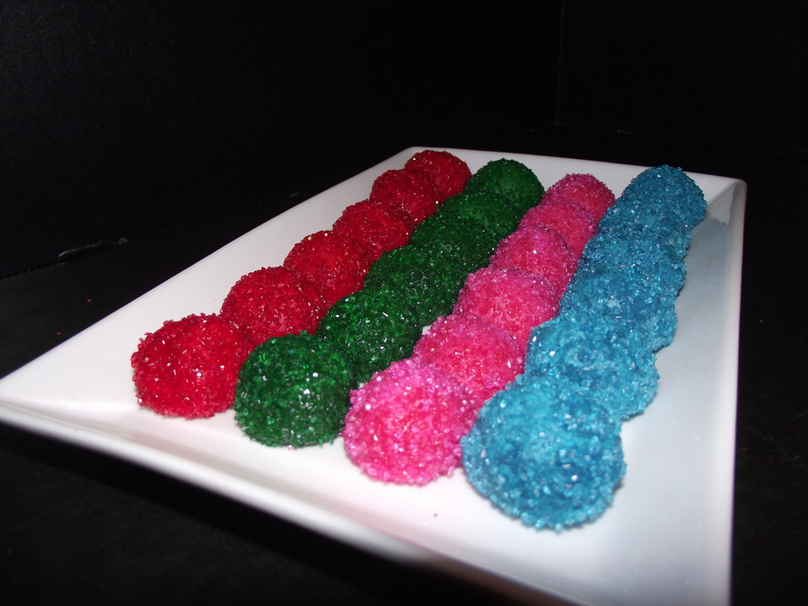 These adorable cookies were made for a local woman's shelter. I used NFSC, colored with Americolor gels and rolled in coordinating colored sugar. Thanks for looking