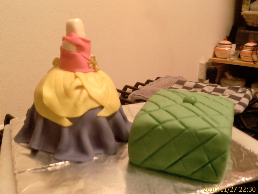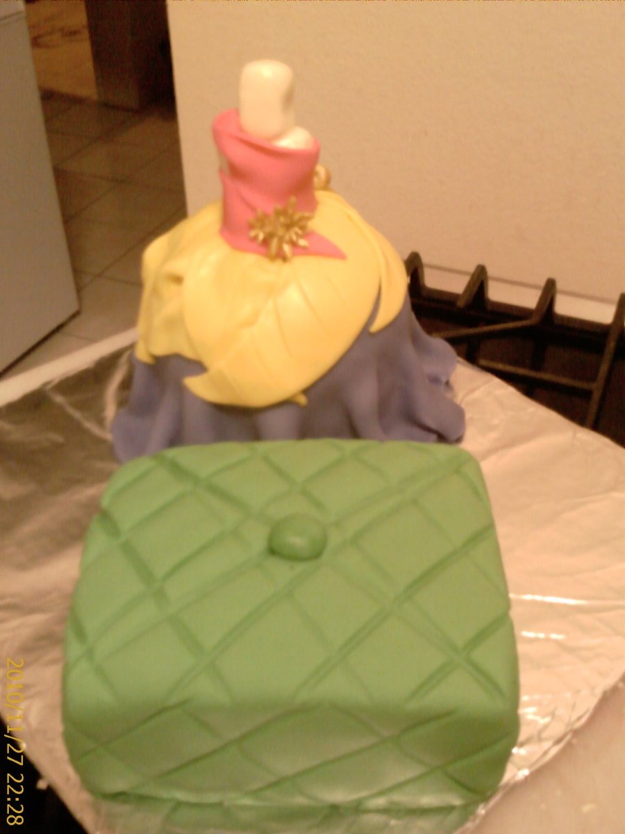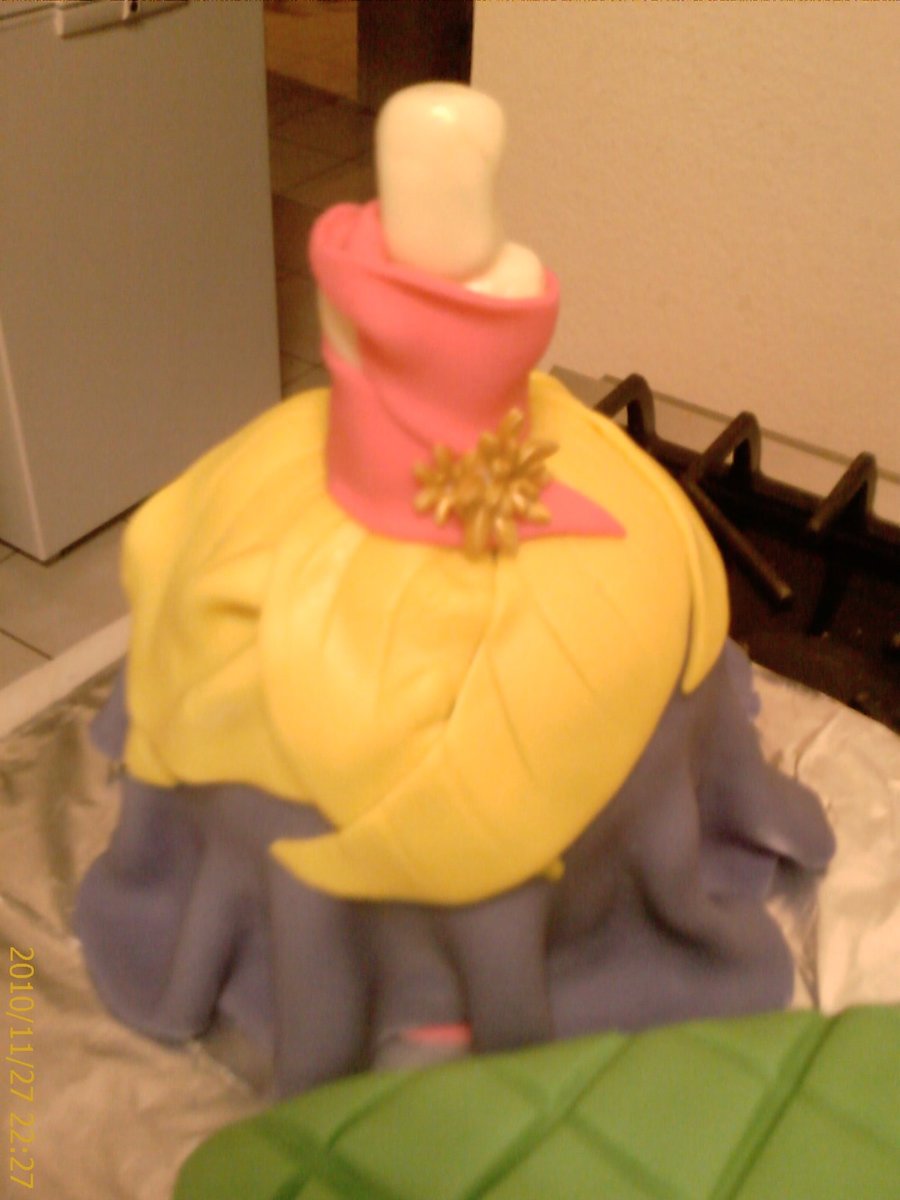 I made this cake for my friends goddaughter,she made11. The dress is displayed on MMF maniquin, the bottom's all cake as well as the cusion. Much thanks to CC for making it easier with their inspirations xxxx