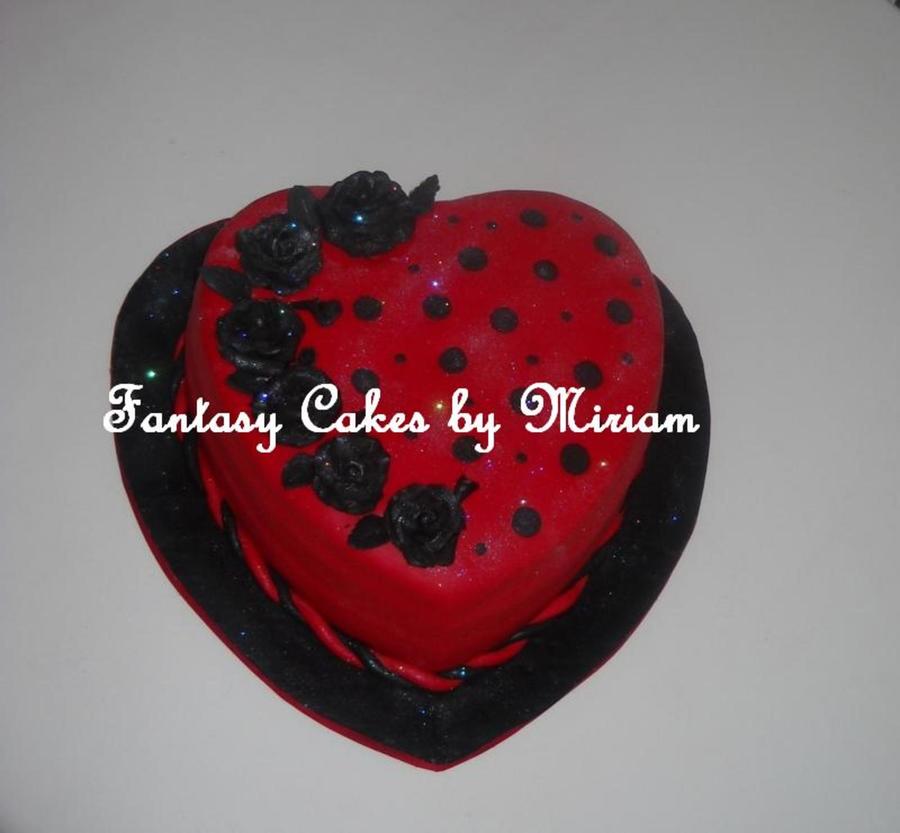 Red Fondant Wedding Cake With Black Roses on Cake Central