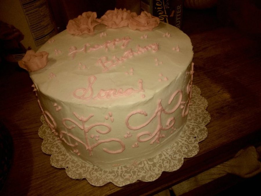 Chocolate cake with Buttercream frosting. Experimented with the filling.... got some oreos and smashed them up and mixed them with the buttercream... it was a BIG HIT!!!!