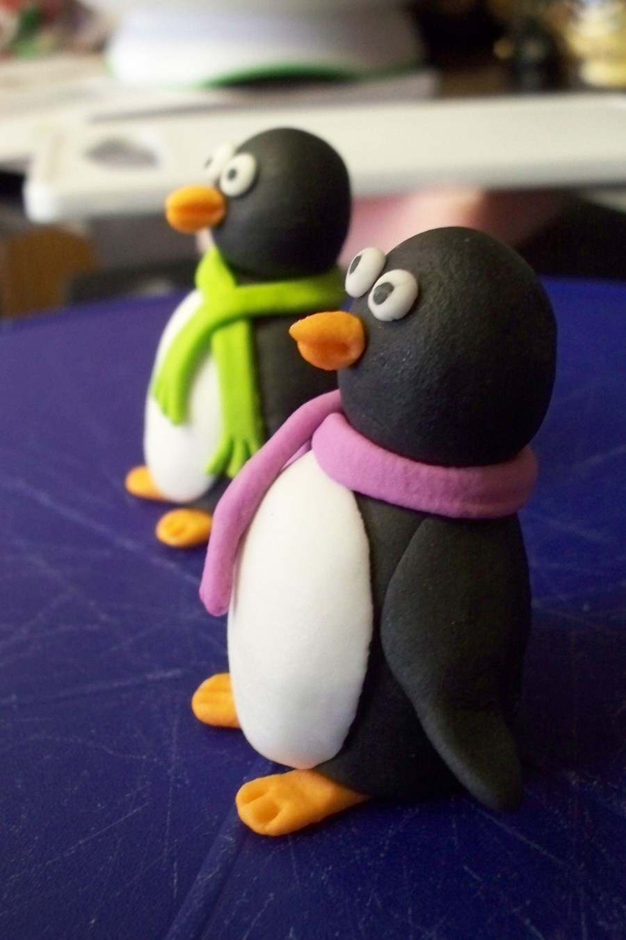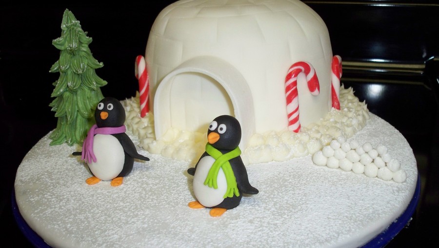 This was made for my daughters 8th birthday. She loves penguins. Chocolate cake with bavarian cream filling.Everything is made of fondant/tylose. TFL and Happy holidays!