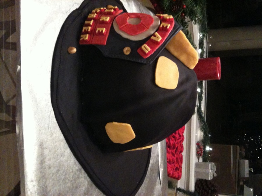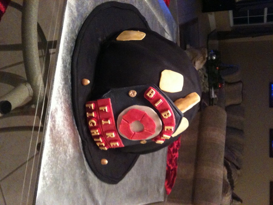 Pound cake with BC frosting covered in Fondant. Letters are candy. Inspired by photos here on CC. Made for a friends graduation from the fire academy. The board says "Last woman standing" because she was the only female to make it through.
