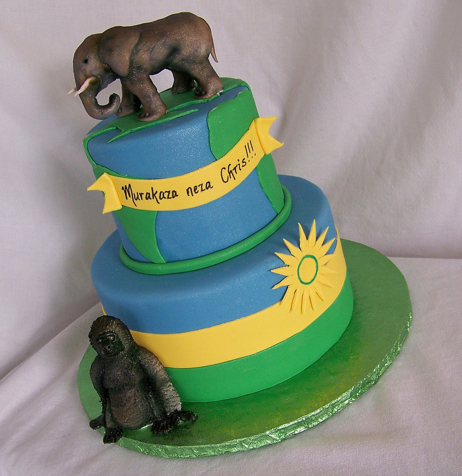 This was a cake I ended up doing this week because someone had a donated charity certificate that expired the end of this year...so I didn't want to let it expire so took the order. The guy was really nice...wanted the animals but said design could be simple...wanted flag colors on base and globe colors on top....brother coming home from Rwanda this week. I liked the elephant. haha. Both animals done in white gumpaste and then dusted/airbrushed.