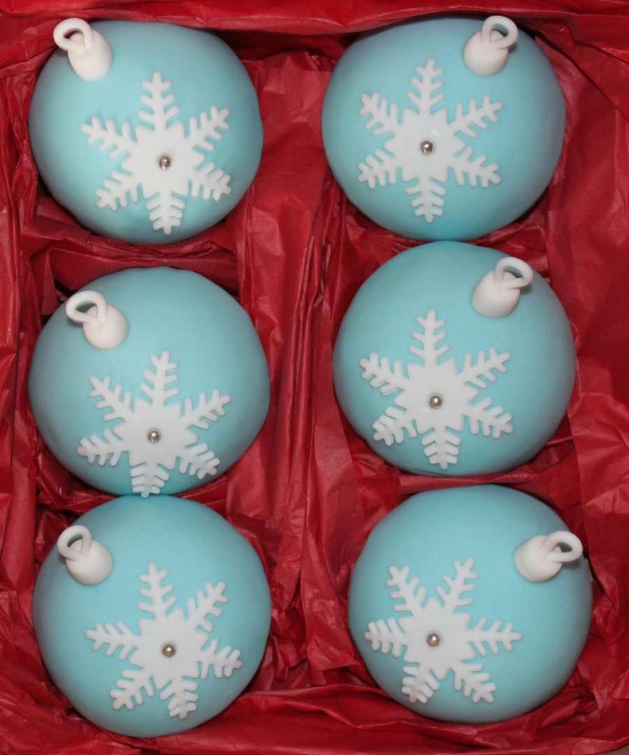 Made more cupcake ornaments for Christmas!! These ones are eggnog spiced cupcakes with a vanilla buttercream filling and an apricot glaze and then decoreated with fondant.