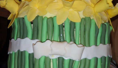 Chocolate cake with creme de menthe flavored buttercream under the fondant.