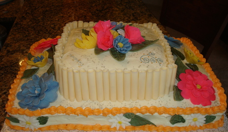 The covering is real chocolate made with transfer sheets and wrapped around 4 layers of chocolate cake with raspberry filling and decorated for the holiday. The white ones are covered in homemade white chocolate transfers sheets, coconut cake with pecan coconut frosting and all fondant and chocolate Christmas decorations