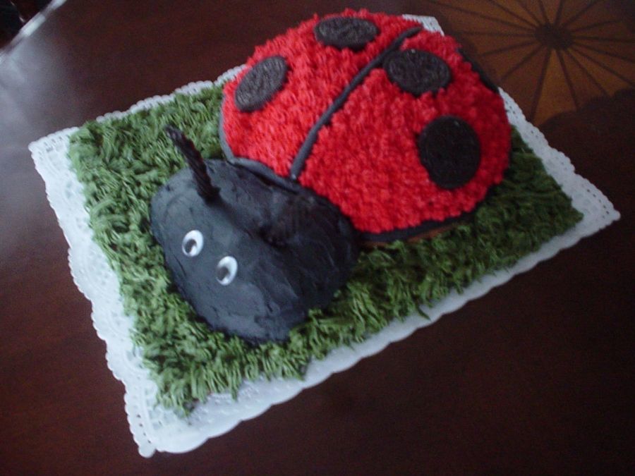 Cake I made for my neice's 5th Birthday. There is a large cookie underneath the "grass".