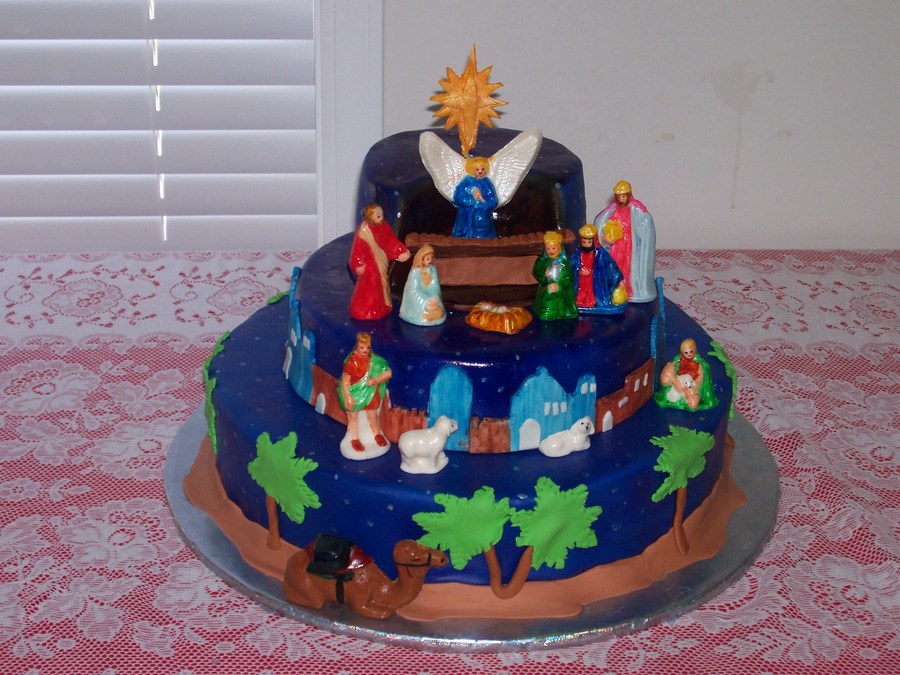 Bottom tier is choc. with turtle mousse filling, middle tier is yellow with banana cream mousse filling, top tier is spice with cream cheese filling. All covered in MMF and airbrushed. All characters were MMF and hand painted.