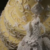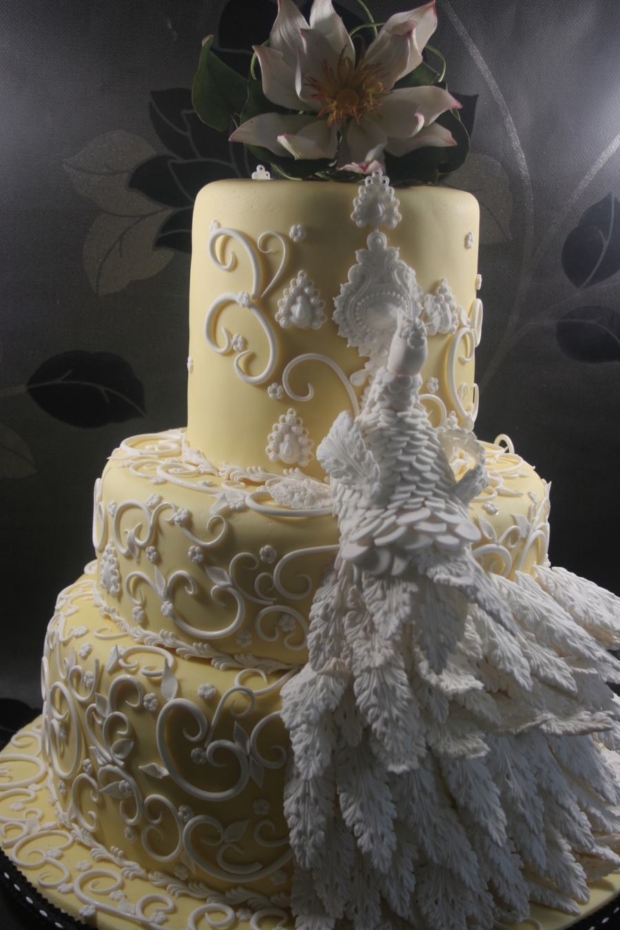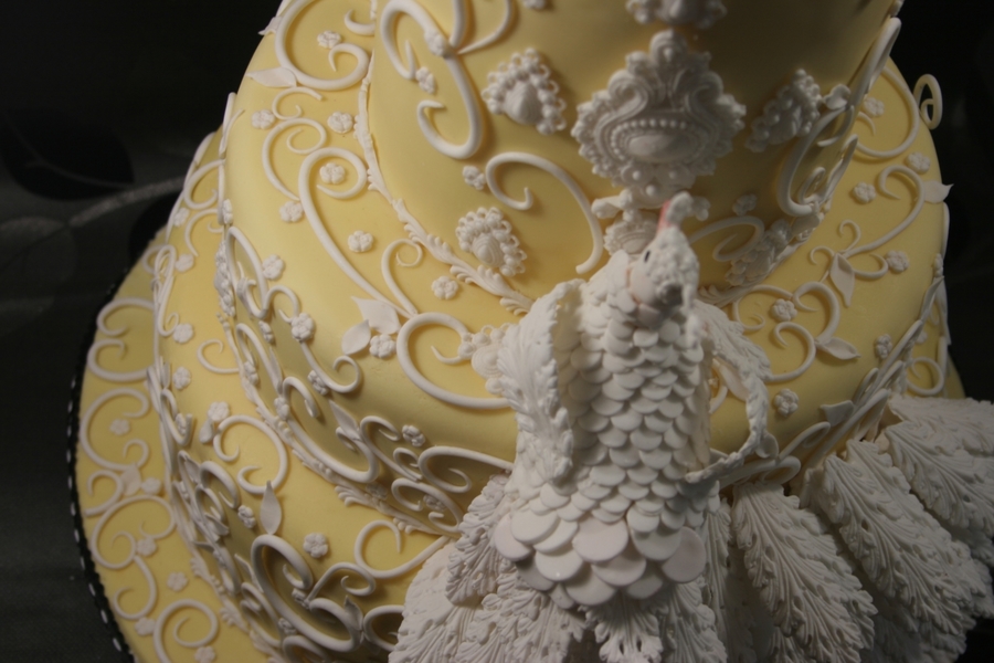 Yellow peacock cake with scrolls. My last cake of the year.