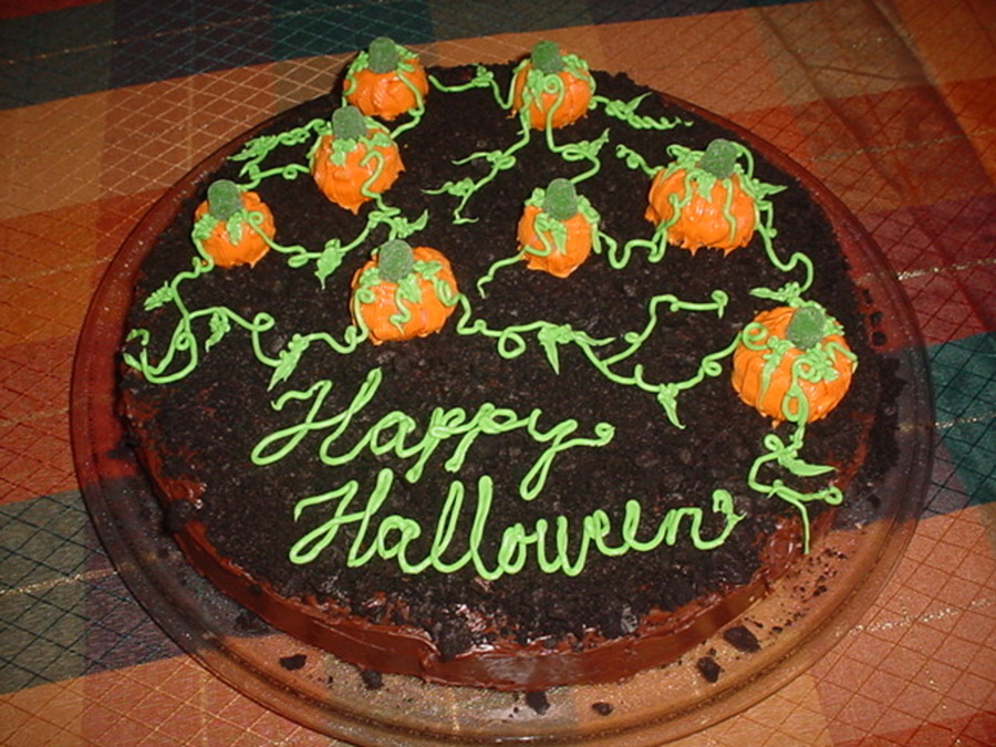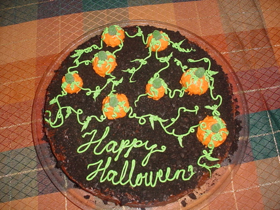 Oh yeah! I've found another edible kitchen "toy" - modeling chocolate. The pumpkins were made of modeling chocolate, then frosted in orange. This cake had a lot of firsts for me - modeling chocolate, vines, leaves and patience in waiting for the orange icing to dry.