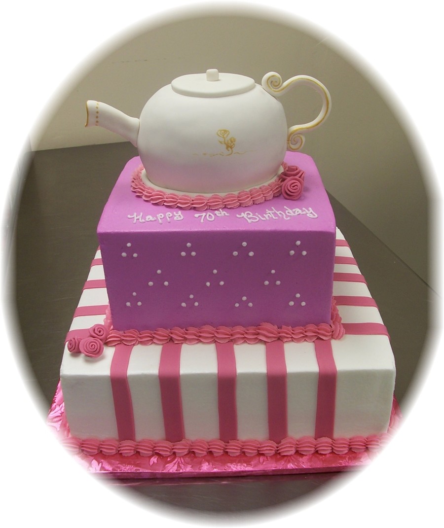 Butter cream with fondant covered tea pot and stripes