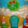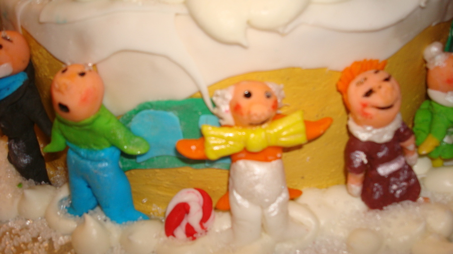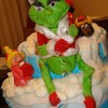 This was my first attempt to make a tospy turvy cake. It came out okay my son's birthday is on Christmas Eve and this is what he wanted. Its a chocolate and white cake with buttercream iciing with fondant and gumpaste accents.