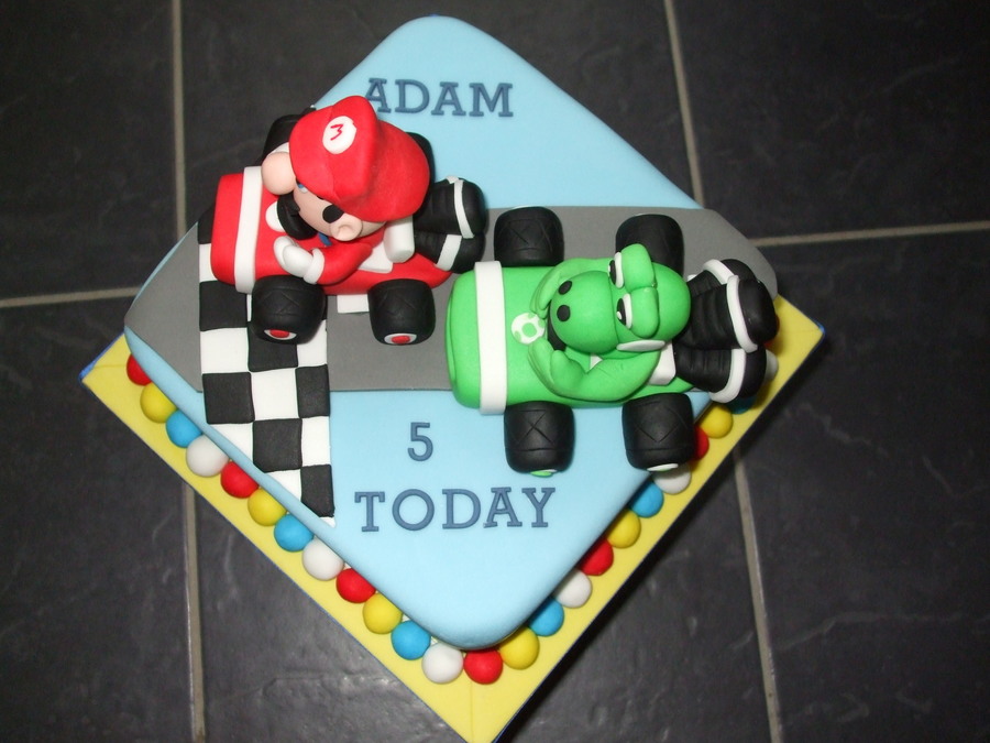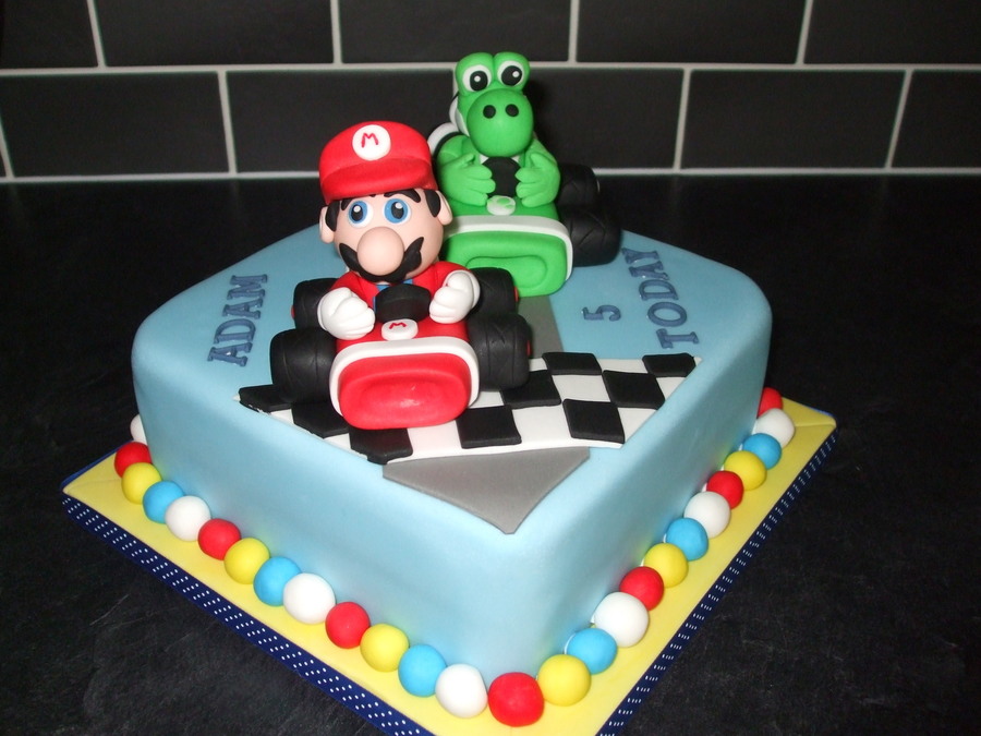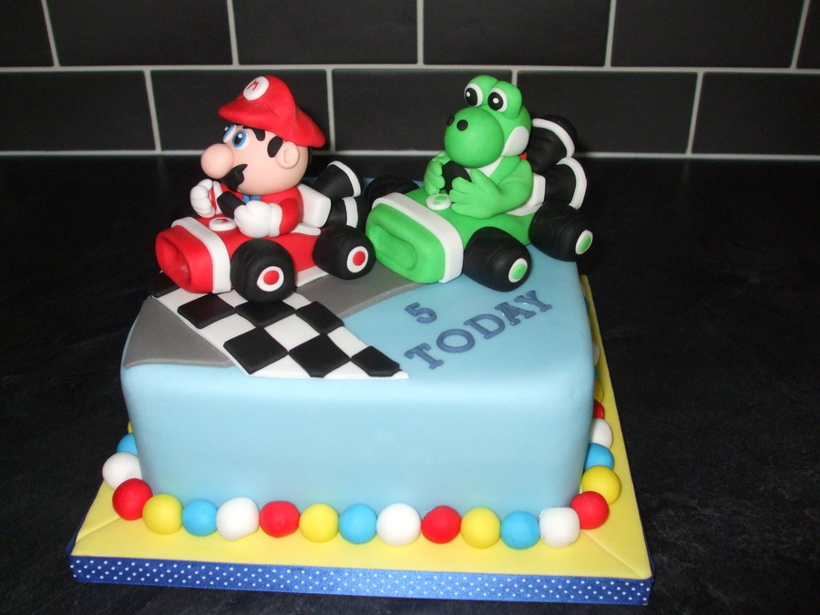 My orders where, " I would a mario cake, racing yoshi, but mario must win" I hope I suceeded!