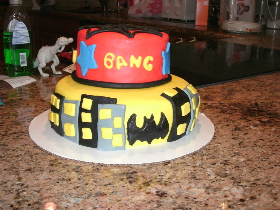 My son turned 3 and really loves superheros. I took many ideas from other cakes here on cc. It covered in fondant and fondant accents.