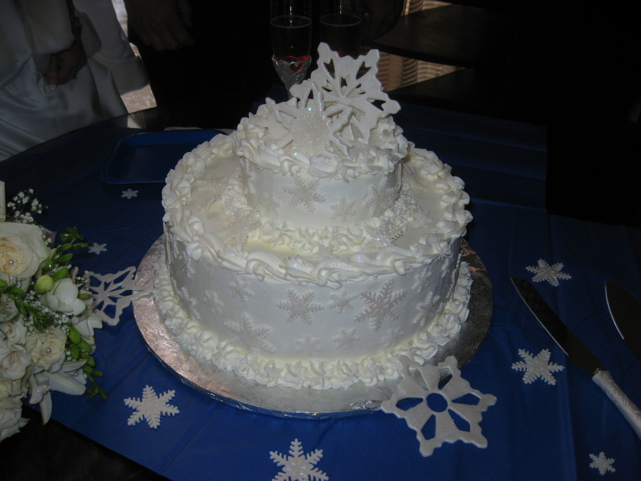 Chocolate fudge, peppermint mousse, frosted in buttercream. Snowflakes are fondant brushed with mystical dust.