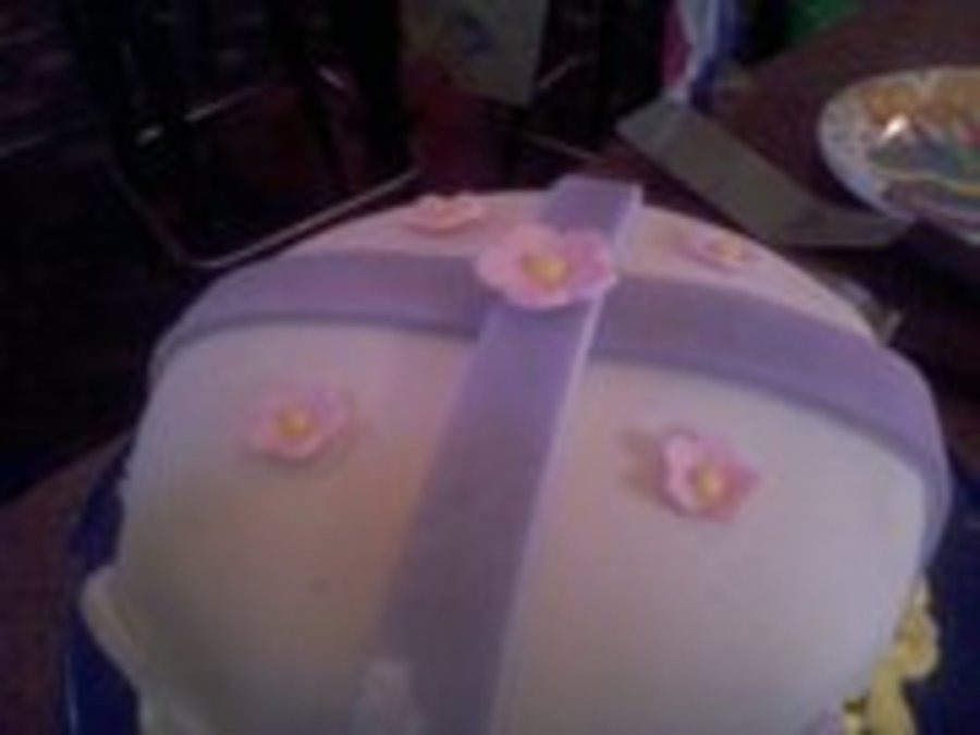 first fondant cake! ( it looks so smooth because i didnt know how thick it should be and it WAS THICK!
