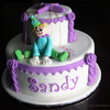 A 60th Birthday Cake with a fondant puppet (all edible except for the string and cards). It was a fun cake to make and it had special significance to the birthday girl!