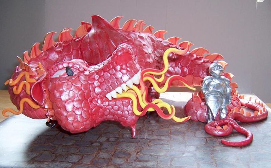 mamacc, this view of your cake is AMAZING! Great work! You can't really see from your other view that the dragon actually stands off the board...this view sells it, big time! Love all the detail, and I especially love how you did his fiery breath! Just outstanding!