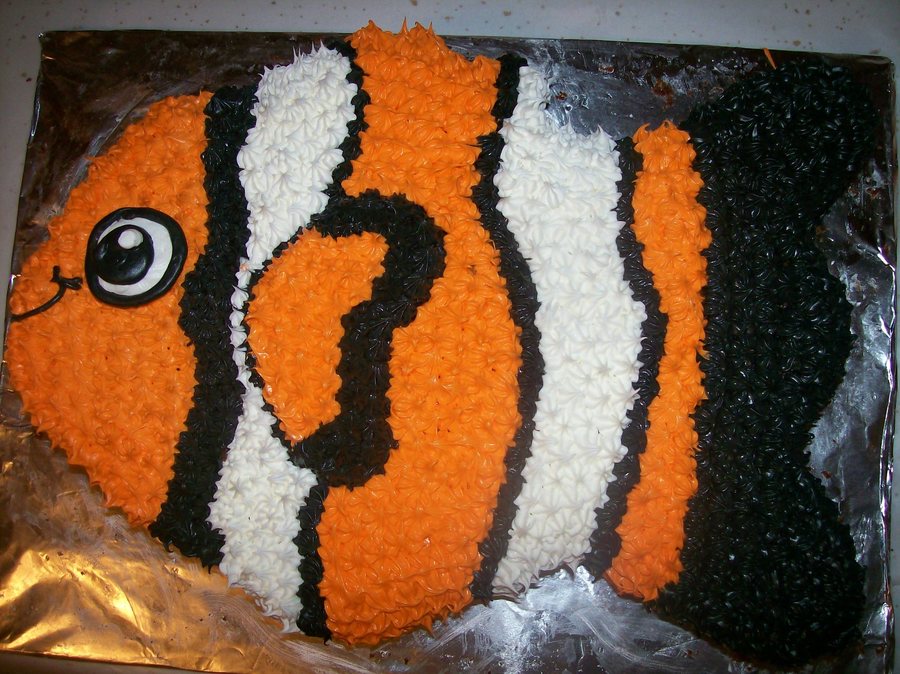 This is a carved and decorated with buttercream nemo.