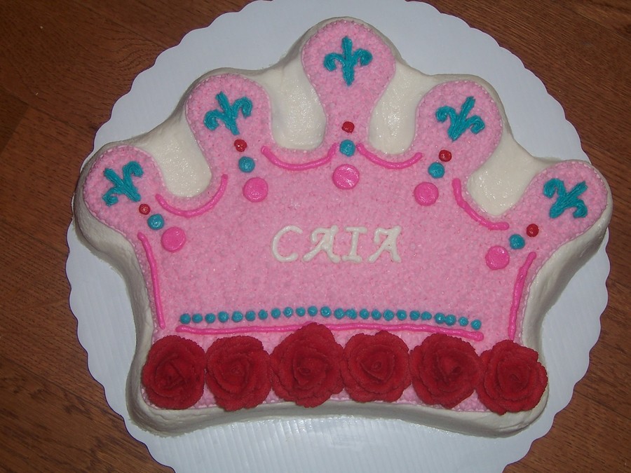 used the wilton crown pan. For a little girls 6th Birthday. she loves princesses, the colors pink and teal. and red roses, so i tried to get it all in.