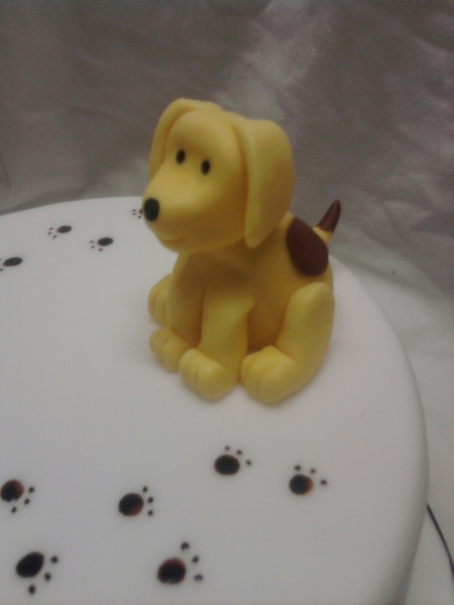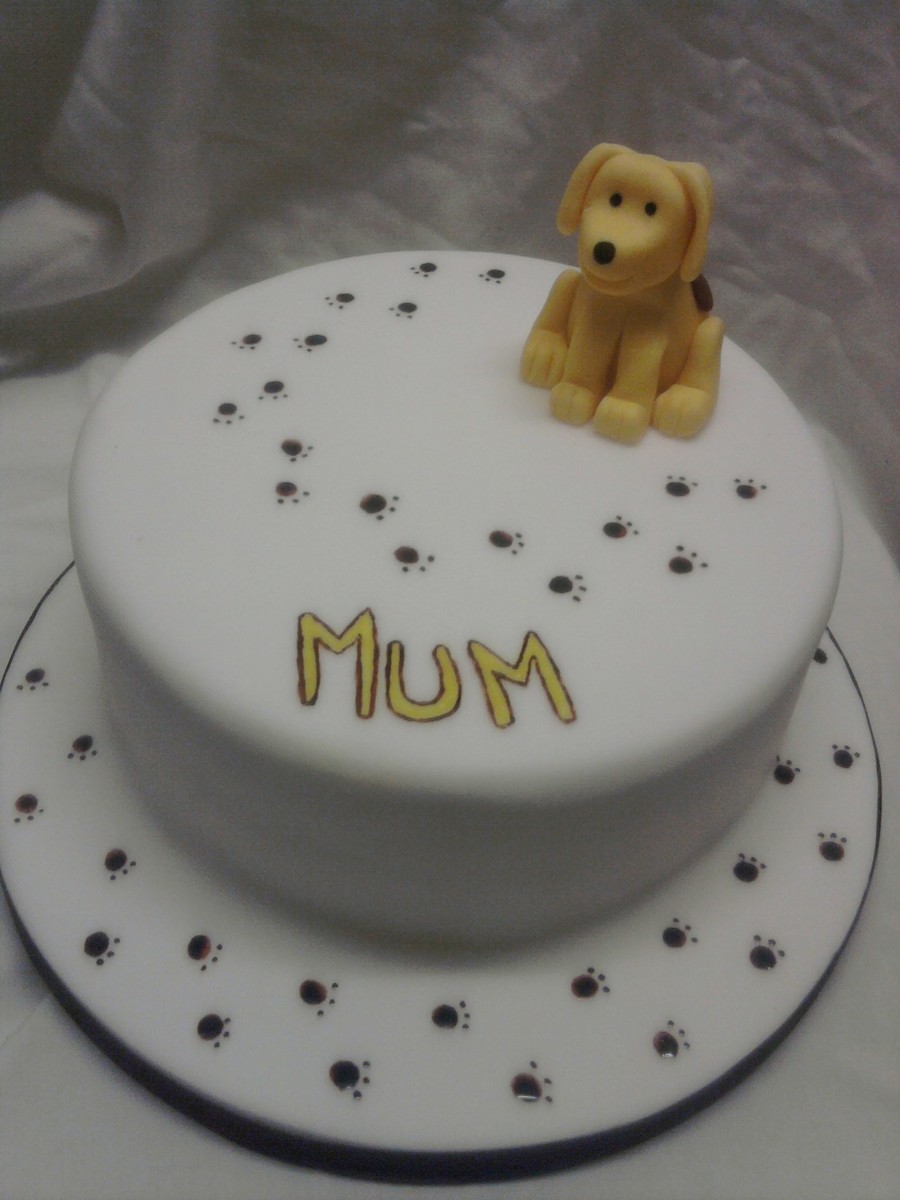 Spot the dog cake for my mum. 8" lemon cake. dog is fondant and tylo. the muddy paw prints and the word mum are hand painted. TFL