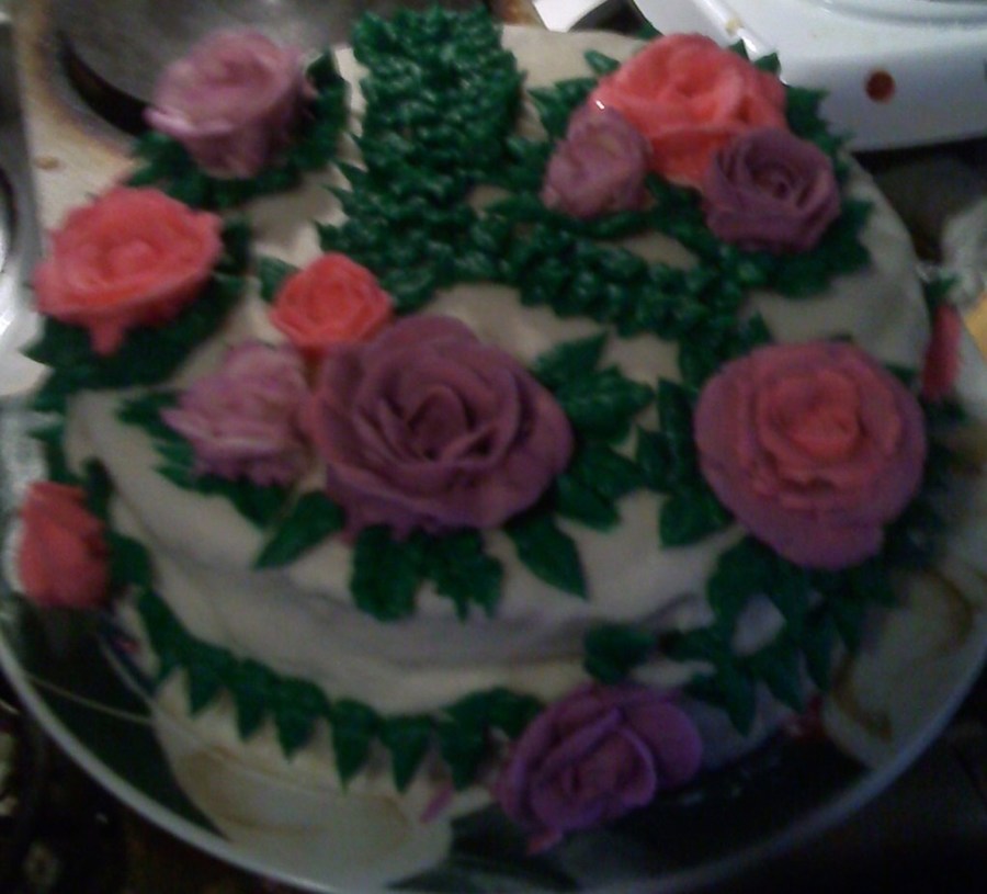 chocolate cake with buttercream icing and buttercream roses just playing around try to make roses