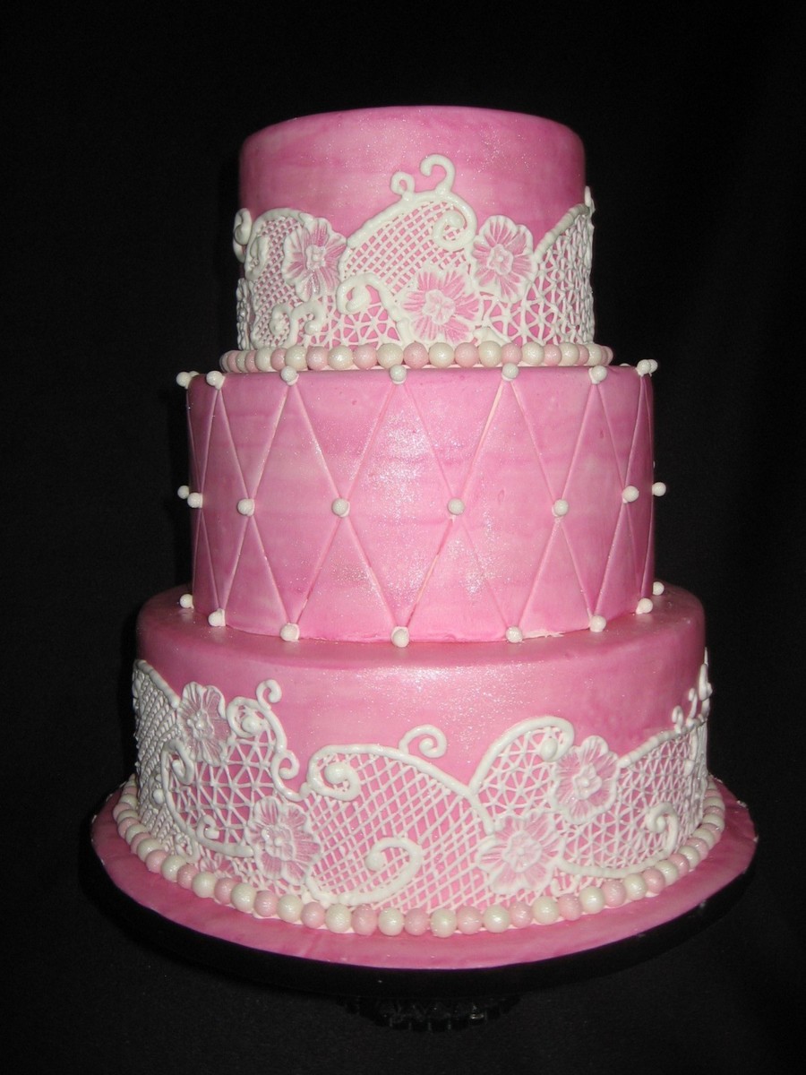 I've always admired the cakes that I've seen that mimicked lace...so I thought I'd give it a try. My piping skills need a little bit of work, but all in all, I think it looks pretty good.