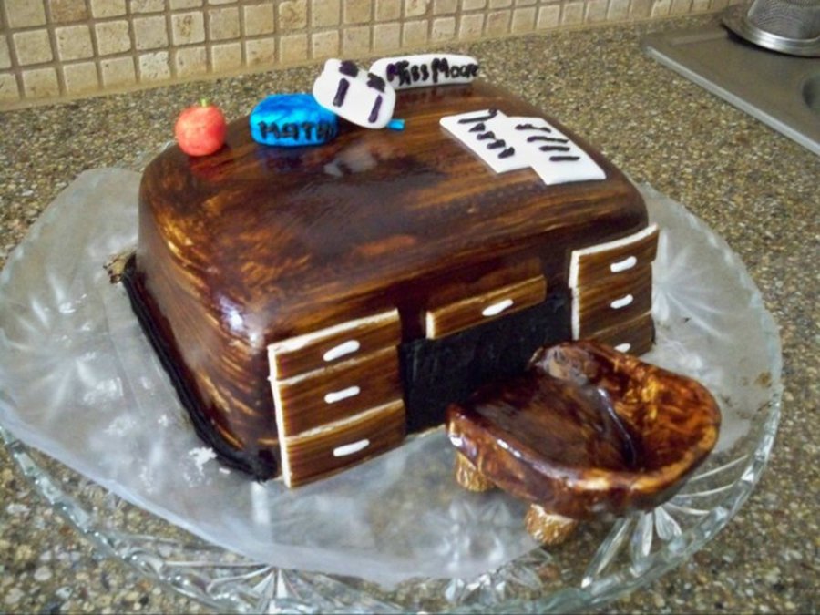 white cake with buttercream icing and fondant with brown gel as wood grain