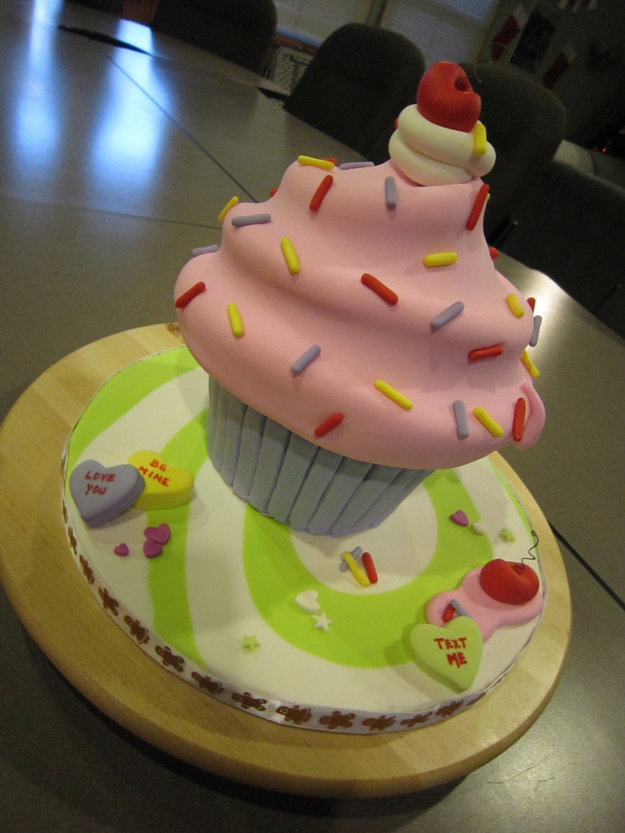 Taught by Andrea Sullivan. The giant Cupcake Class I took. My kids had fun tearing into this cake when I got home from class. Super fun to make. All fondant, gumpaste accents.