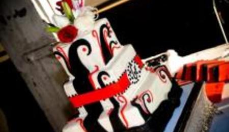 Red And Black Swirl Custom Wedding Cake