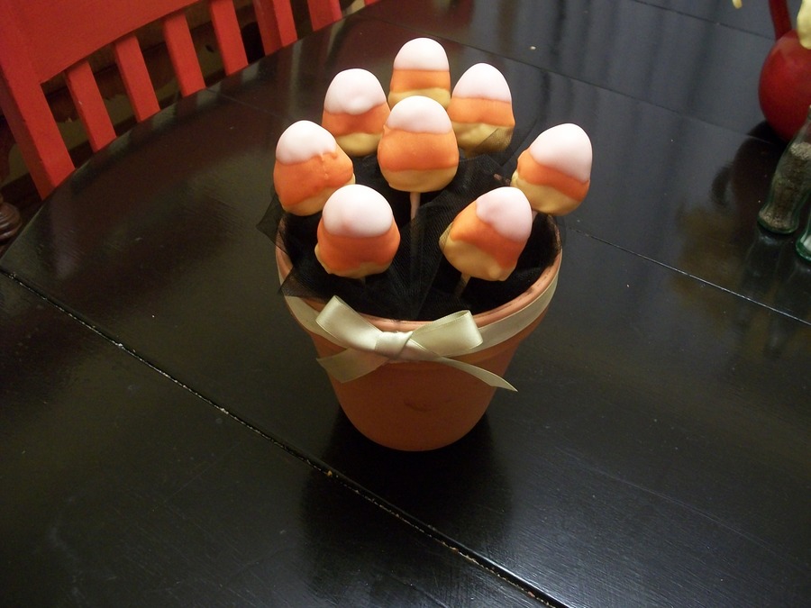 These were made from the leftovers from my Happy Harvest cake. :) I HATE wasting leftover cake!