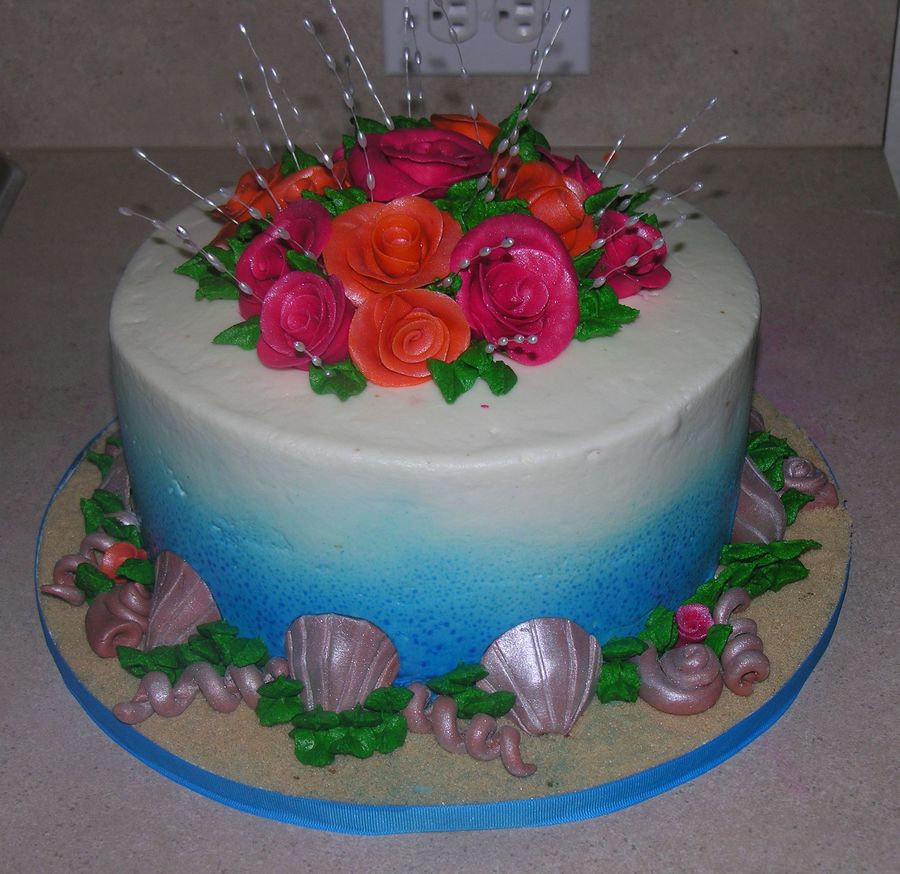 Beach cake, gumpaste roses