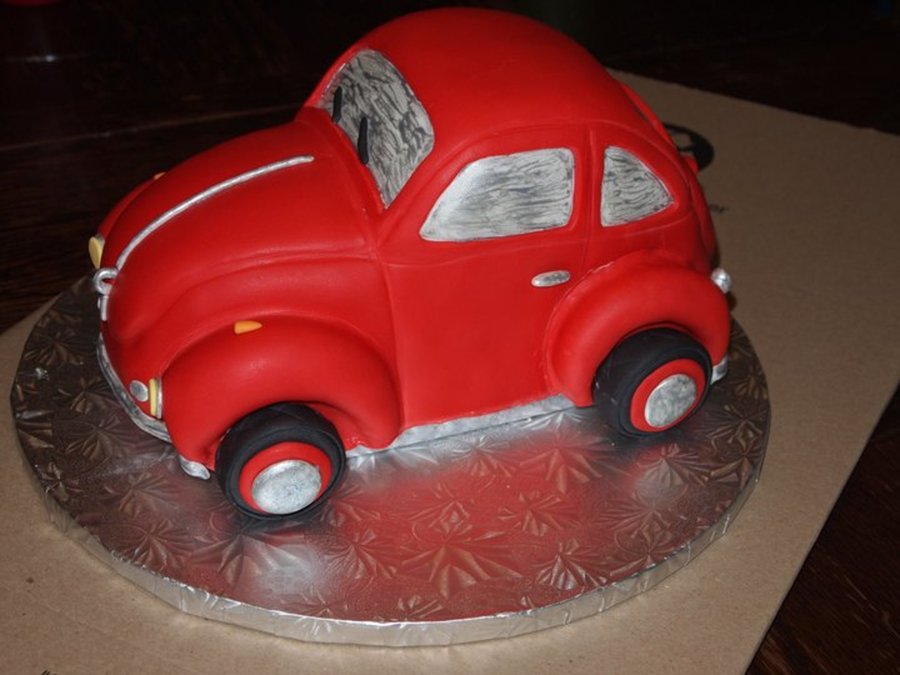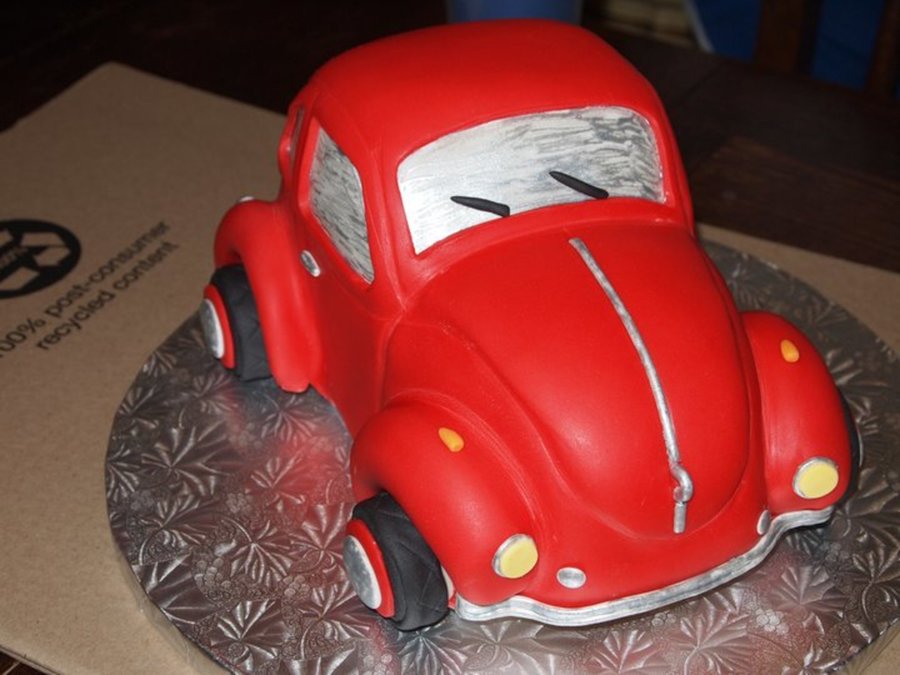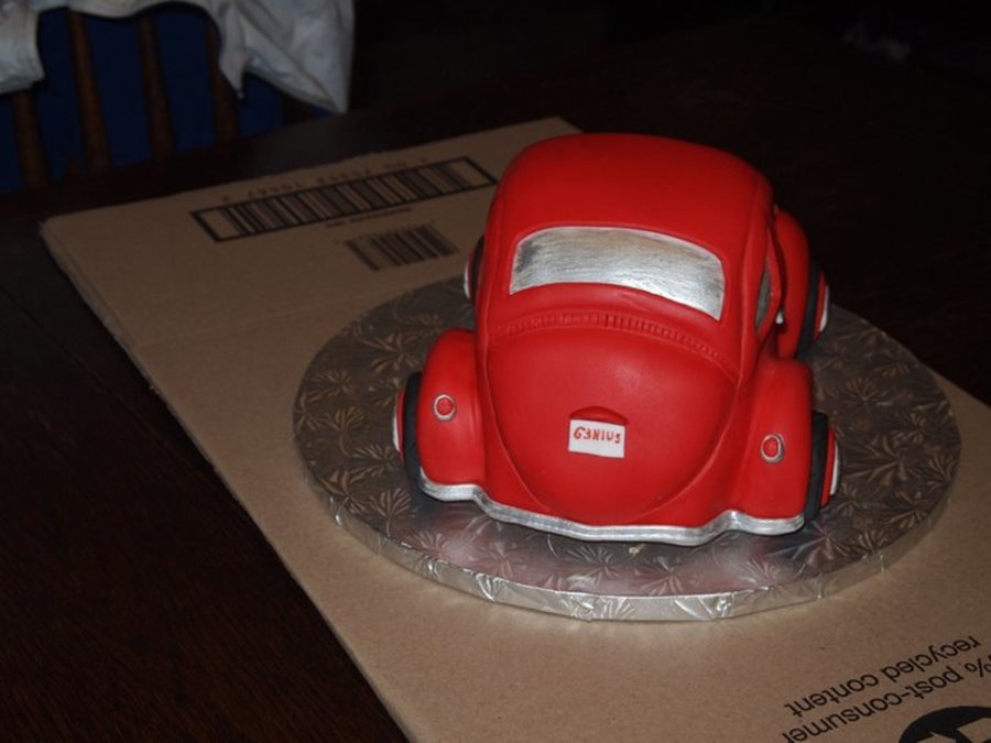 I did this cake last minute as a Thank You for a friend who is always fixing my computers. We call him the Genius! But I got sick right before I got to finish it. So my hubby had to take it to him unfinished. But this is only my second carved car. Thia Bug was more difficult only because of all the curves. My Specially Vanilla flavored cake and buttercream...YUMMY!