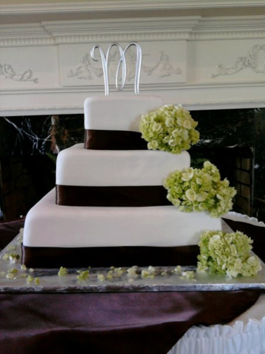 simple wedding cake, green gardenia
