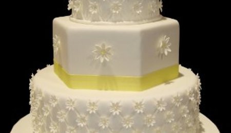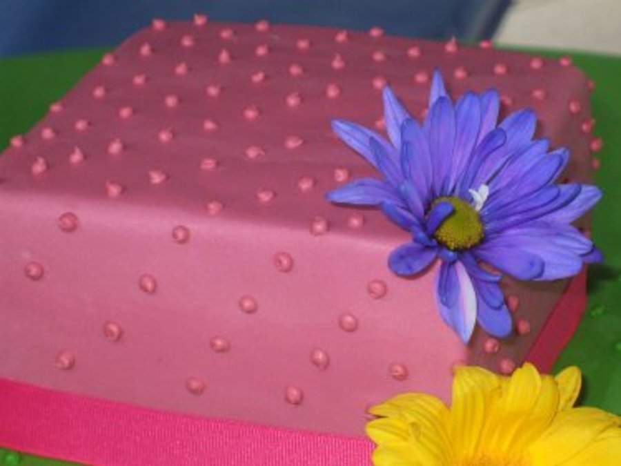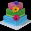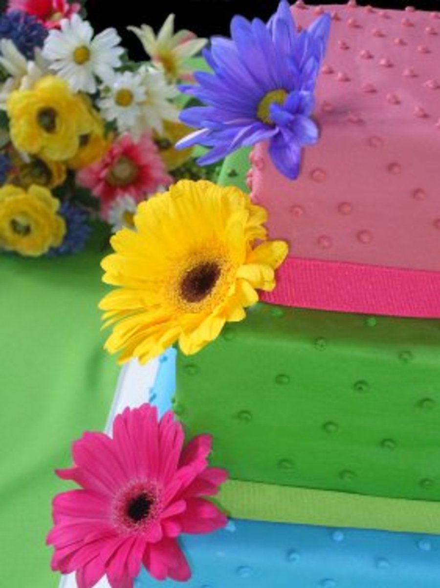 Emily's bold cake shows off bright, whimsical colored fondant with fresh flowers.