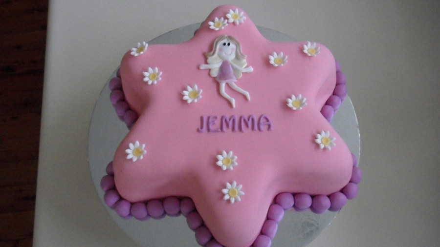 For a little girl's fairy-themed 4th birthday. Vanilla cake with raspberry buttercream. Covered in white chocolate ganache then fondant. All decorations gumpaste.