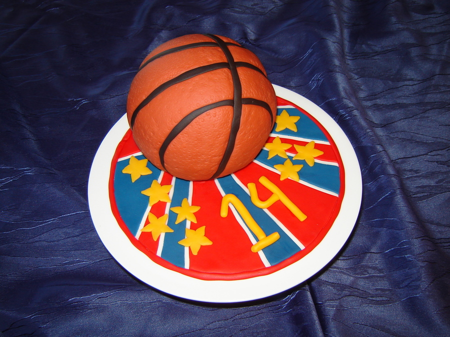 My son loves playing basketball and for his birthday we gave him a trip to see the Harlem Globetrotters so of course the cake had to be a basketball this year! Vanilla cake, BC and fondant. TFL!
