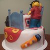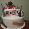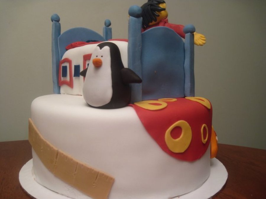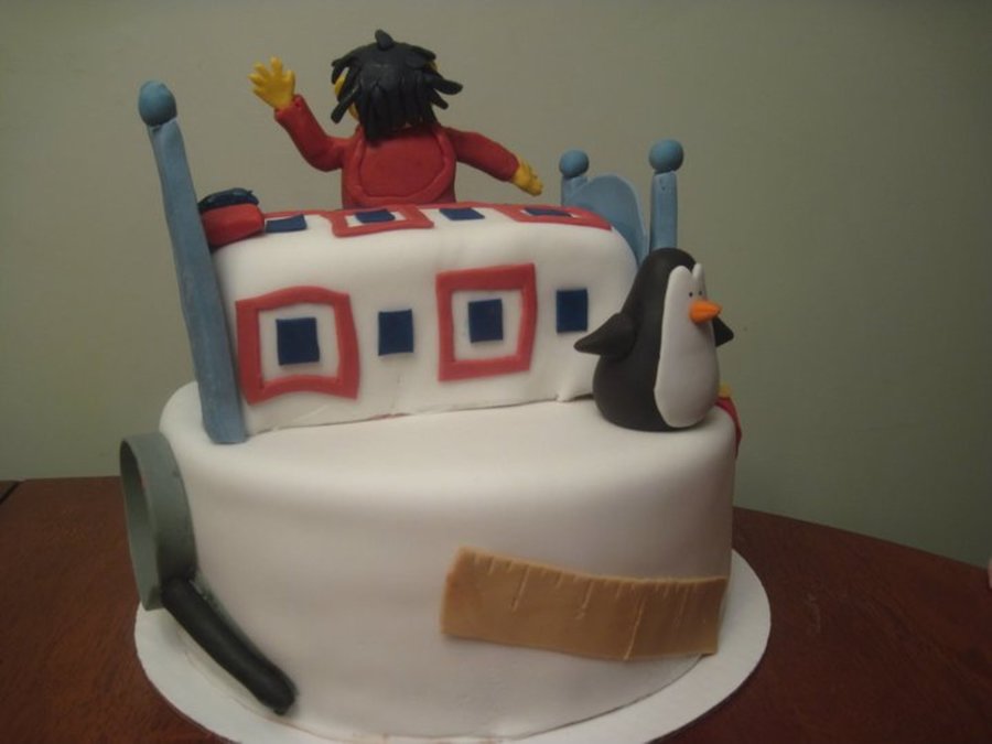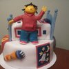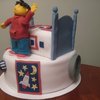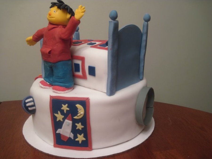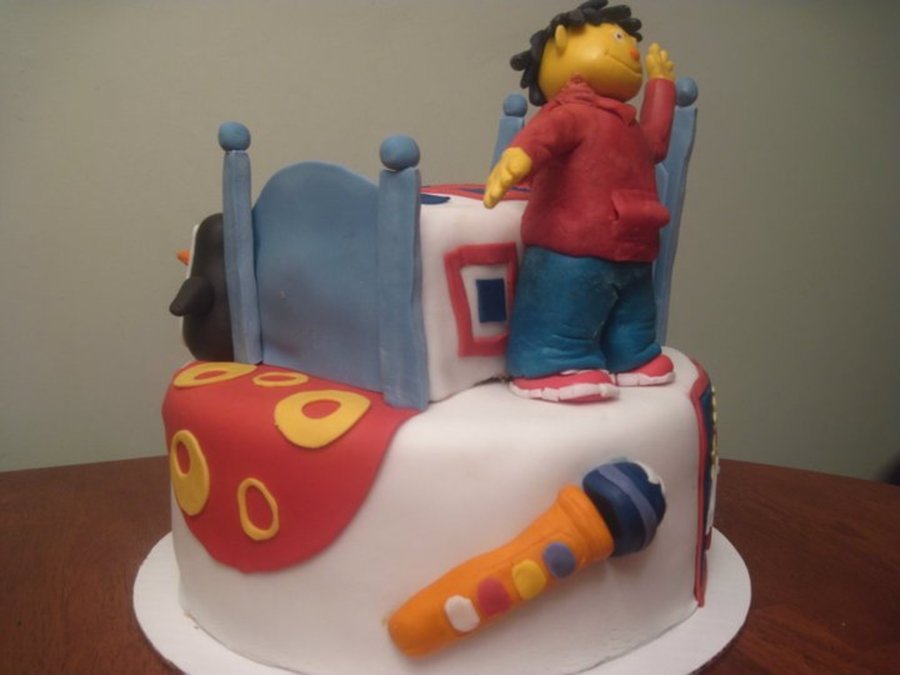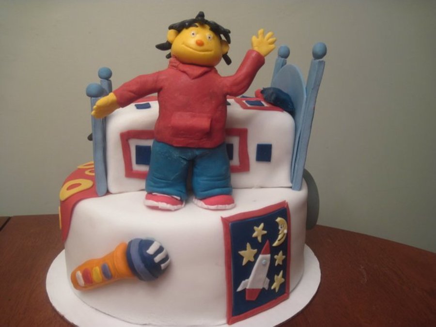 Sid and Dr. Beaks from the PBS show "Sid the science kid". 10" 3 layer chocolate cake with chocolate buttercream frosting.
