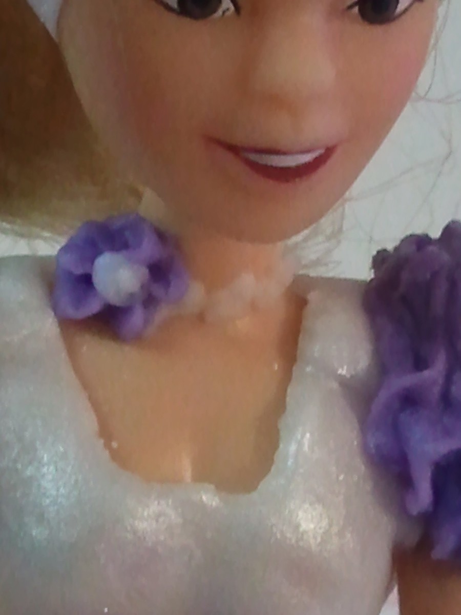 Mini six inch doll cake. Frosted & decorated using buttercream icing.
