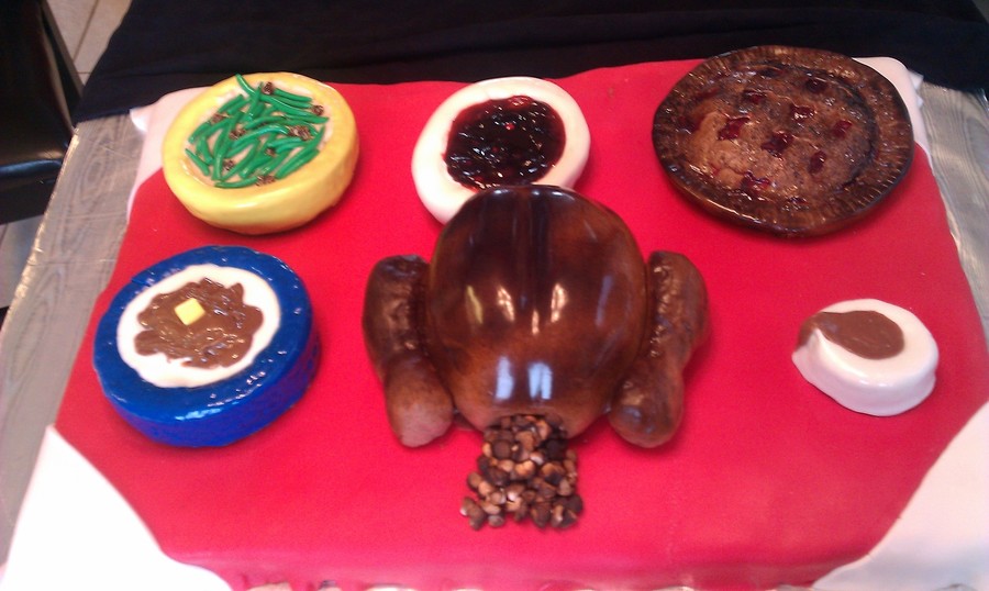 I made this cake for my boyfriend's work's Thanksgiving Celebration. It was a Thanksgiving Table setting with Turkey, stuffing, cherry pie, and all the trimmings.