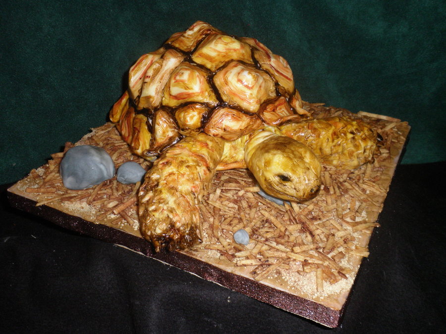 Pumpkin cake, and fondant, hand painted. Did this one just for fun.