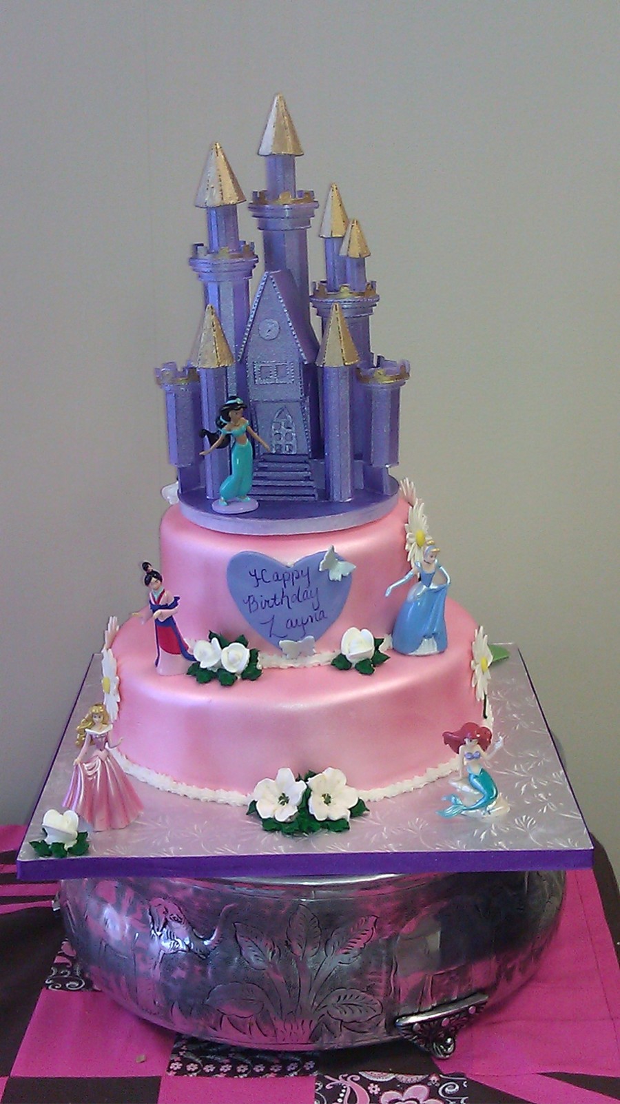 2 tier Princess pink and purple castle. Styrofoam wedding topper with Jasmine